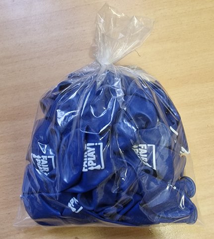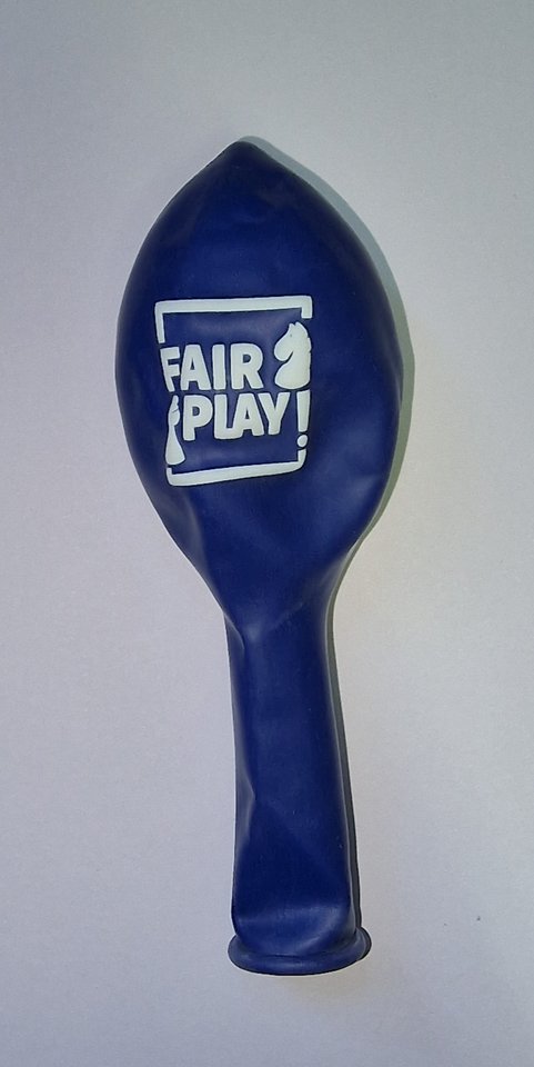 Blaue Luftballons mit Fairplay-Aufdruck.