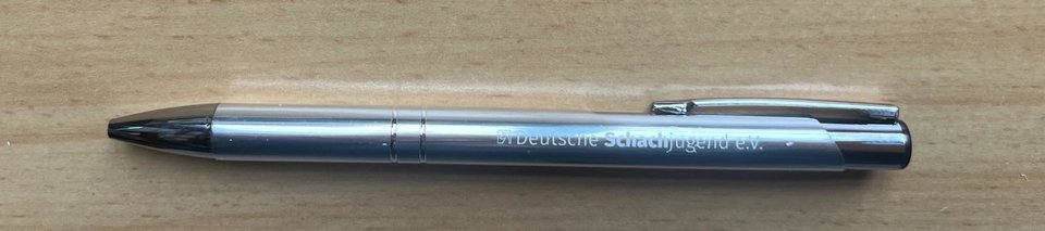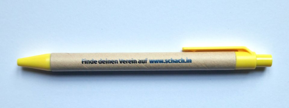 Kugelschreiber mit Schriftzug „#schachFAIRein“.